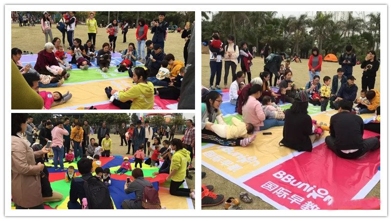 清爽的早晨春风,清新的空气,绿绿的户外大草坪,BBunion国际早教南宁中心与您和宝贝相约在凤岭儿童公园“幸福摩天轮”大草坪下,彩虹伞扑捉漏网小鱼、赛道障碍物、过山洞、按摩操……