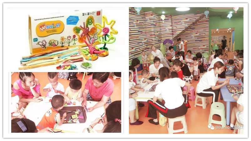BBunion国际早教中心引进韩国进口的玩教具??弯弯乐,它是一种集美术、建筑、益智、运动多元教育功能一体化的新概念产品。色彩鲜艳而丰富,结构安全耐用,主构件曲线柔软可随意定型,宝宝玩的时候可以随心所欲表达自己想象中的物体形状。