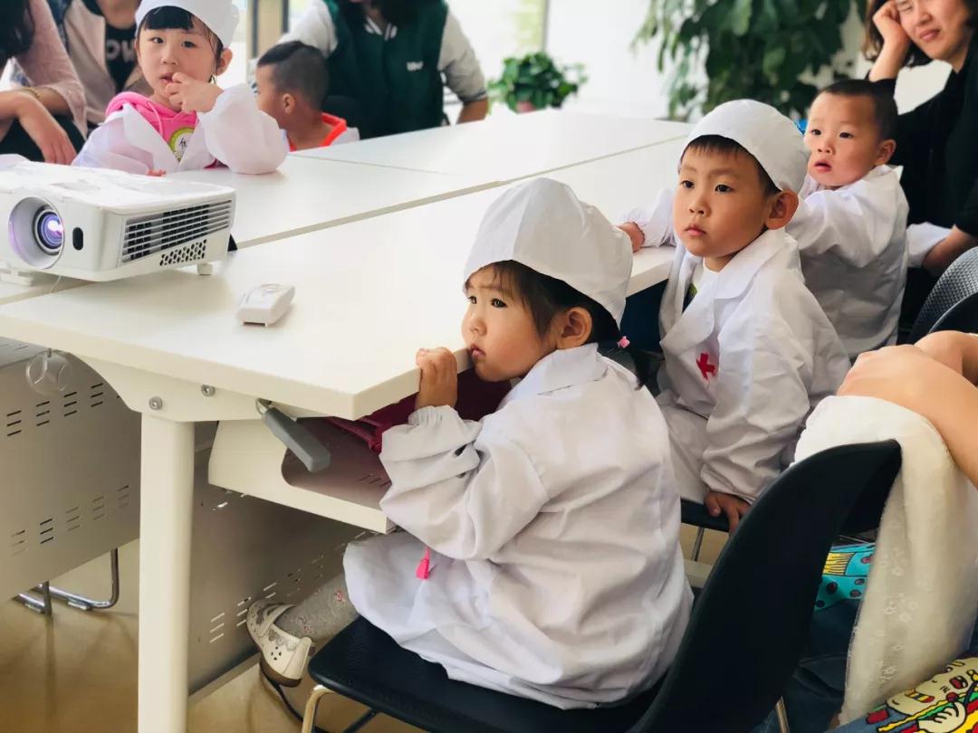宝贝们换上小小牙医的衣服,排排队站好。要成为一名专业的小牙医,必要的口腔知识可不能少。一段保护牙齿的动画片,寓教于乐,宝贝们看的都津津有味呢。看宝贝们坐的端端正正的,很专心呢!恒伦口腔的王大夫还讲解了不少实用的护牙知识点,爸爸妈妈在很认真的记录呢。