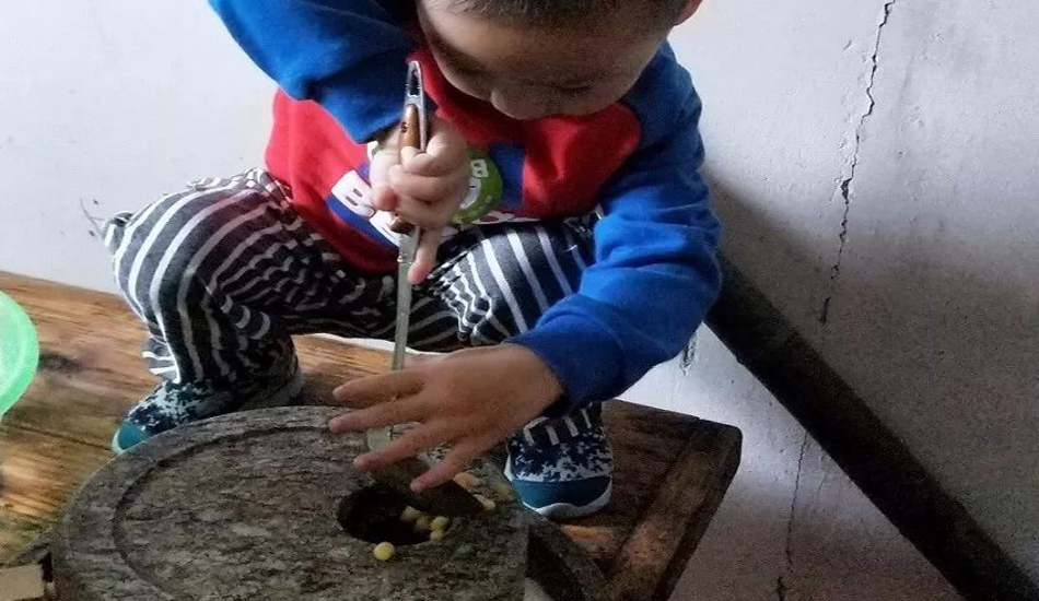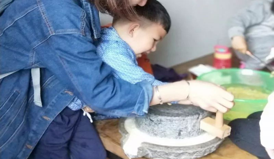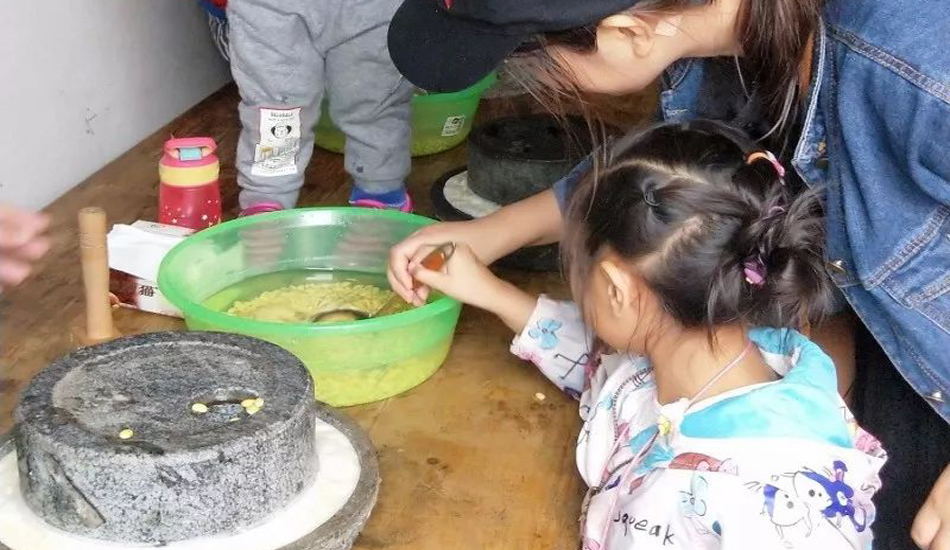 取下了山涧泉水,我们就要用它来磨豆浆啦!让宝贝们自己动手,体验磨豆浆的乐趣感受到自己的劳动成果