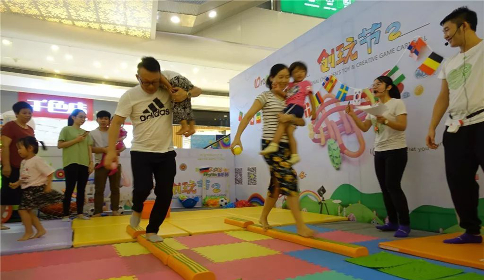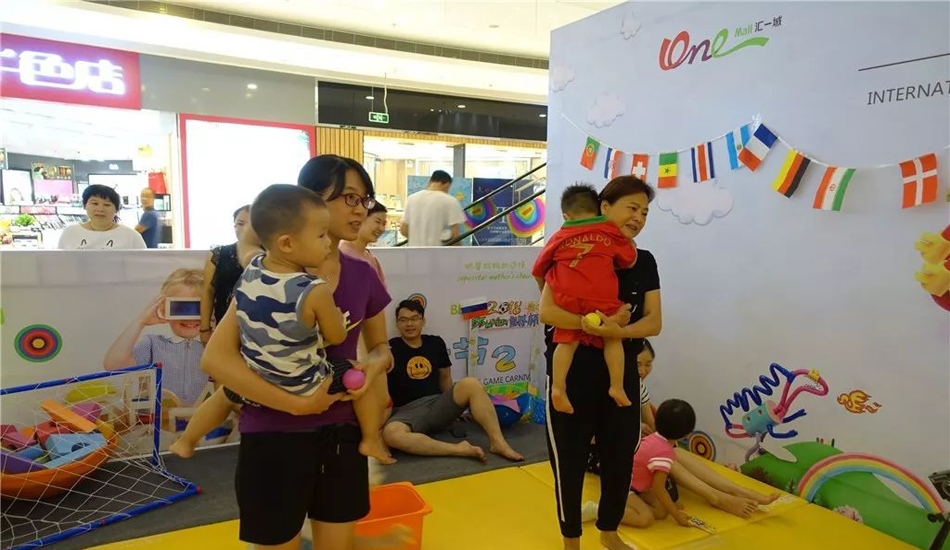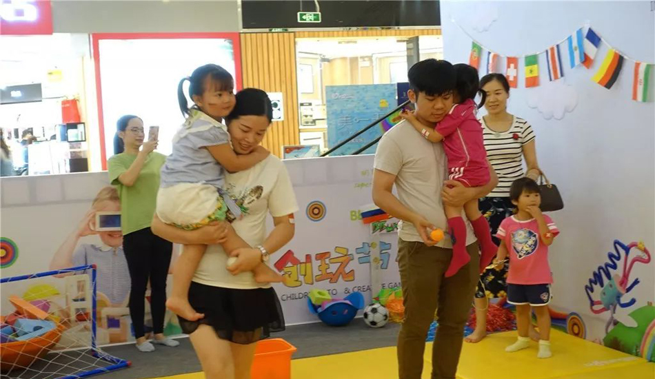 宝贝和爸爸妈妈总是最佳搭档,越过障碍运送球,奔跑中欢笑,享受着比赛的快乐~