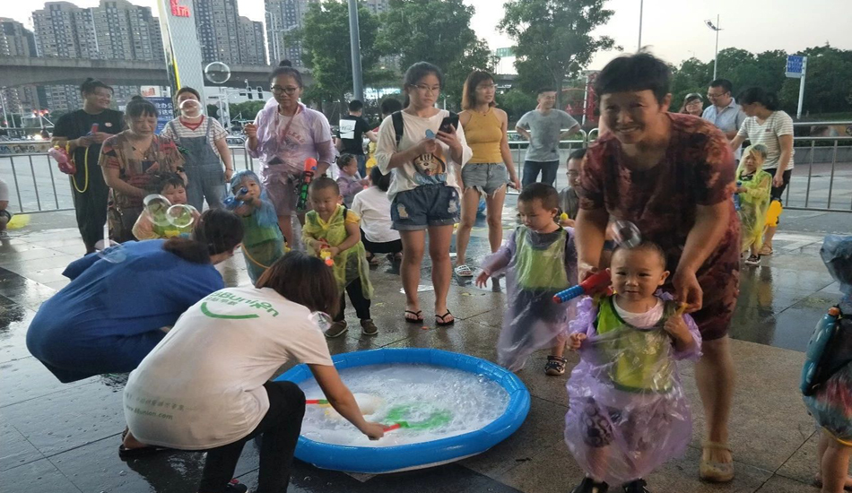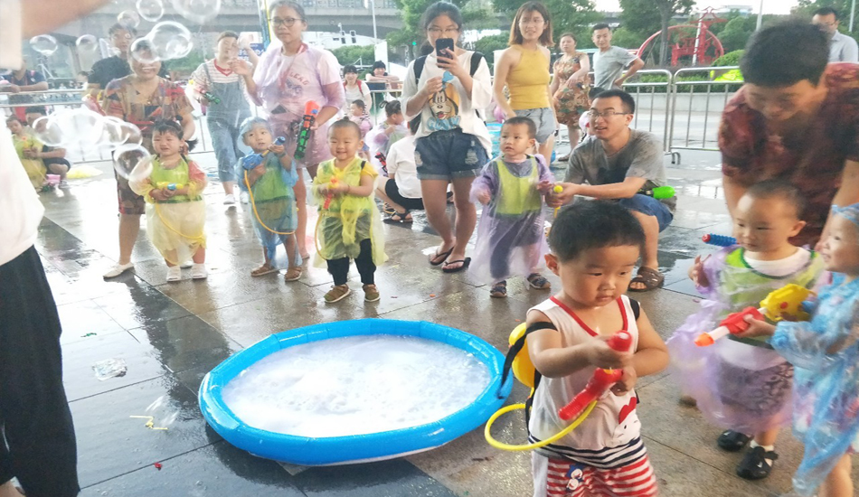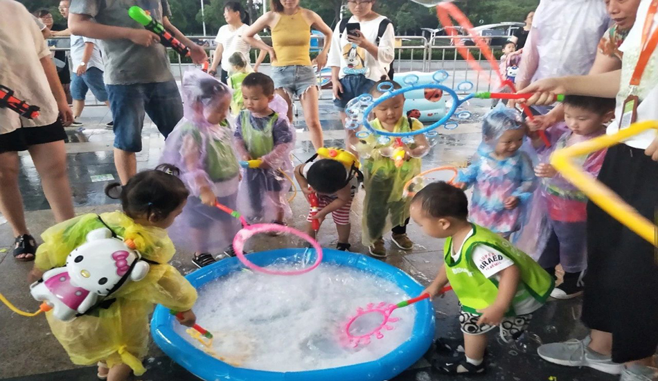 我们除了水枪大战,还有宝贝们最喜欢的泡泡秀表演,这些泡泡在阳光的照耀下,五光十色,也是好看及了~~~
