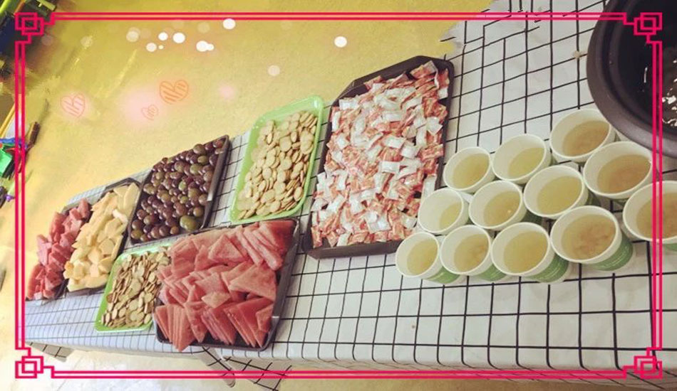 游戏过后我们的小点心:甜甜的西瓜、脆脆的小饼干、补充体力的能量糖果、沁人心脾的冰糖雪梨汁等等。