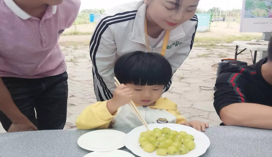 一个小时的养精蓄锐,很快就到达了葡萄园,稍事休息之后,开始了我们第一个小游戏:?葡萄,别看宝贝们年龄小,夹葡萄也是稳准狠呐。