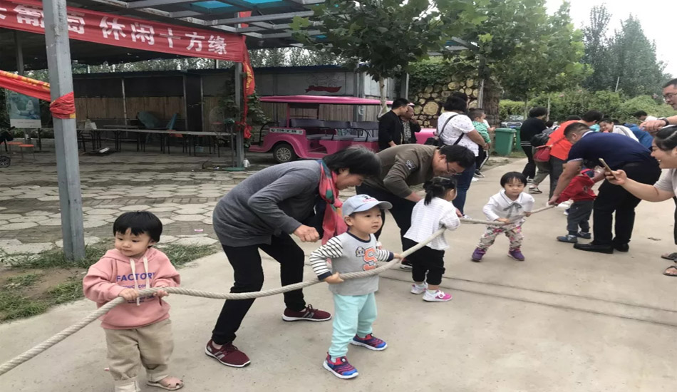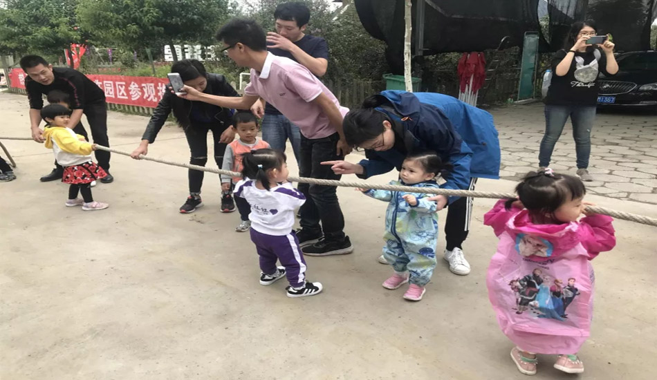 爸爸妈妈来拔河,宝贝们也要试一试,哪组更厉害呢?