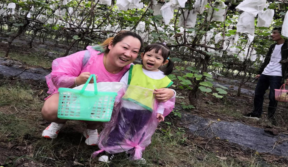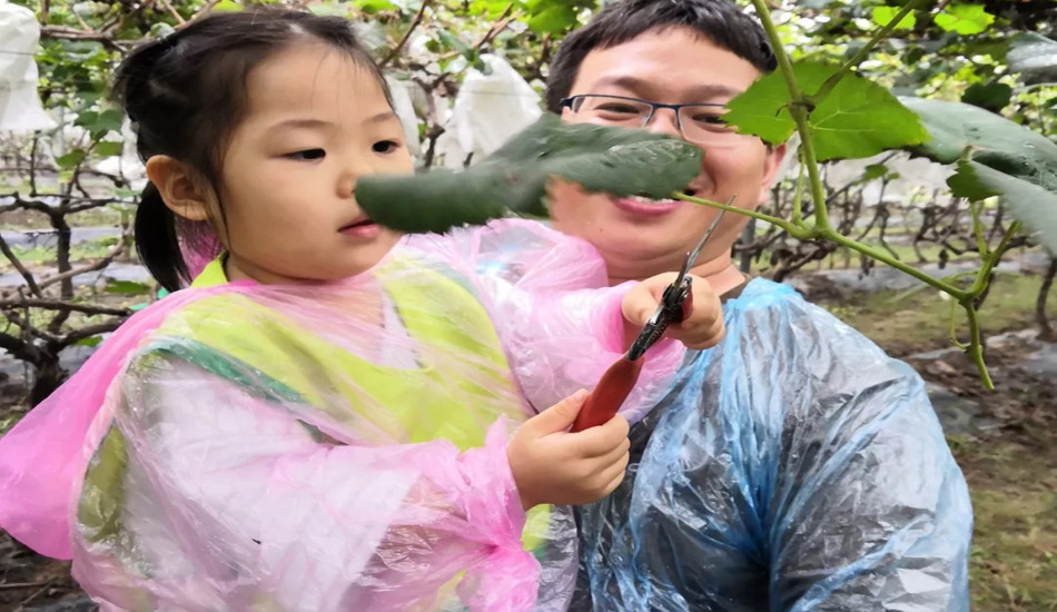 做完游戏,天空开始飘起了小雨,但丝毫没有影响宝贝们摘葡萄的热情。